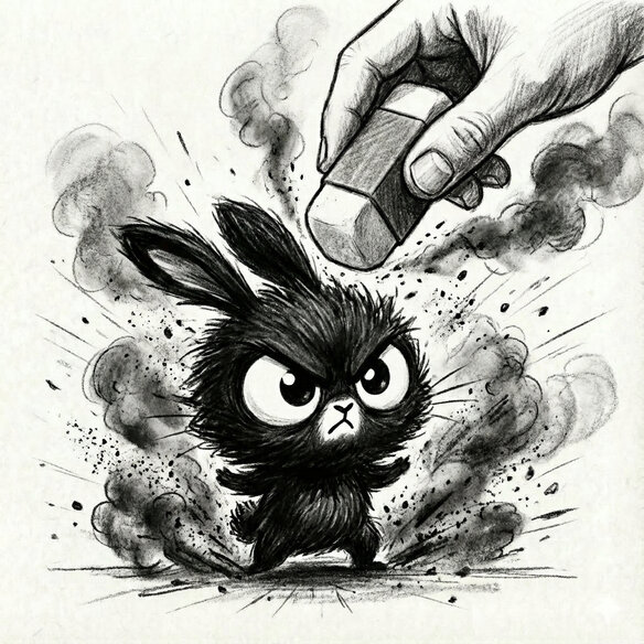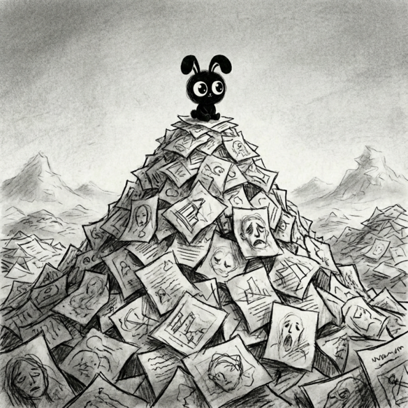Resident Doctor: Soot Bunny. As a native of this waste manuscript world, Soot survived the "Ctrl+Z" purge. He now serves as the only therapist here, prescribing silence and soot to headless dragons and glitchy text monsters.