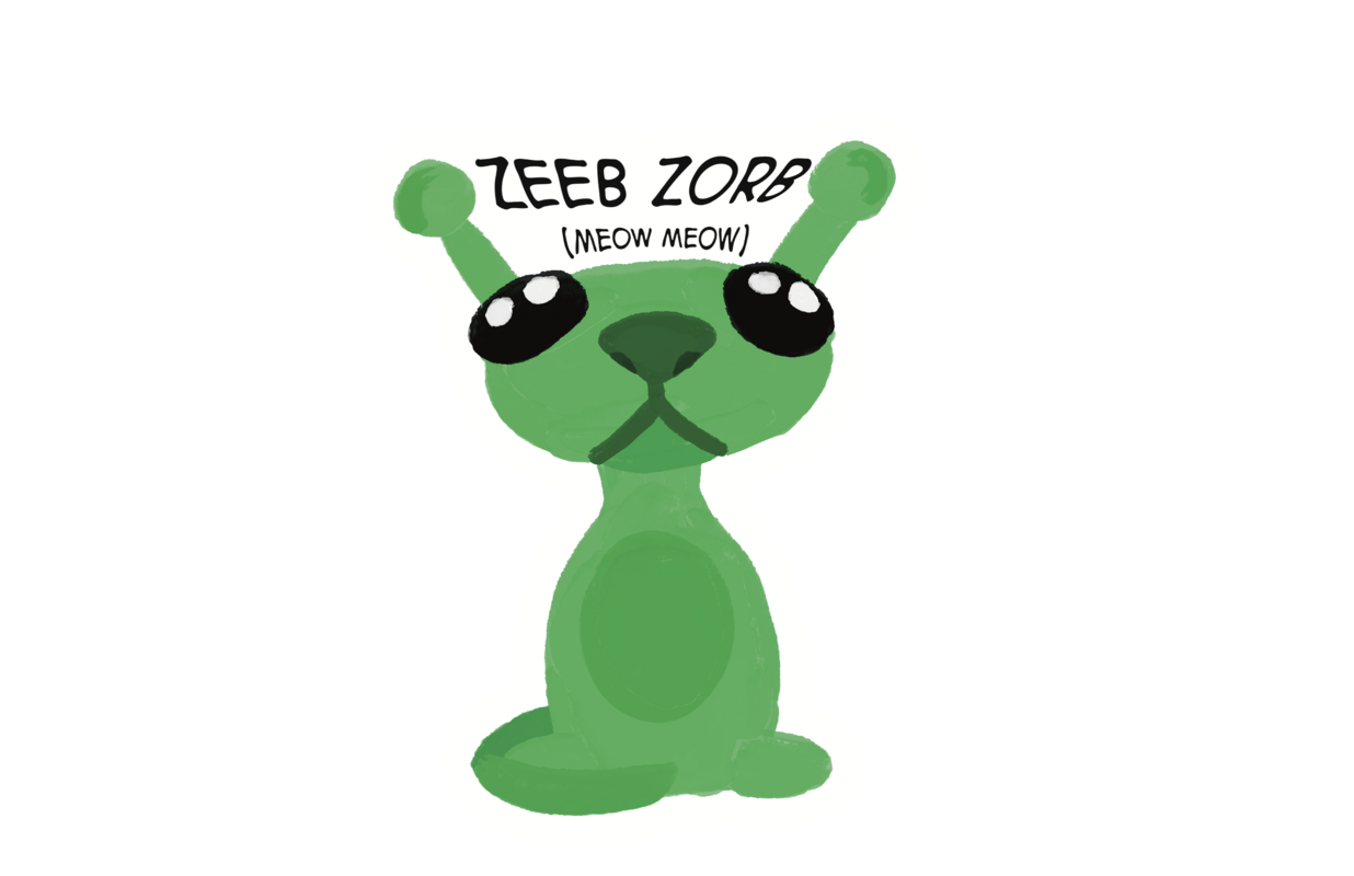 #StickyCharacters A species of green cats that aliens keep as house pets, like cats, they go Zeeb Zorb.