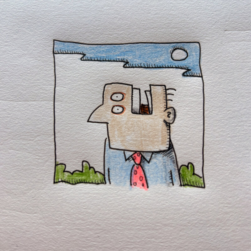 Pen and ink with colored pencil on paper. Directly from my sketchbook.