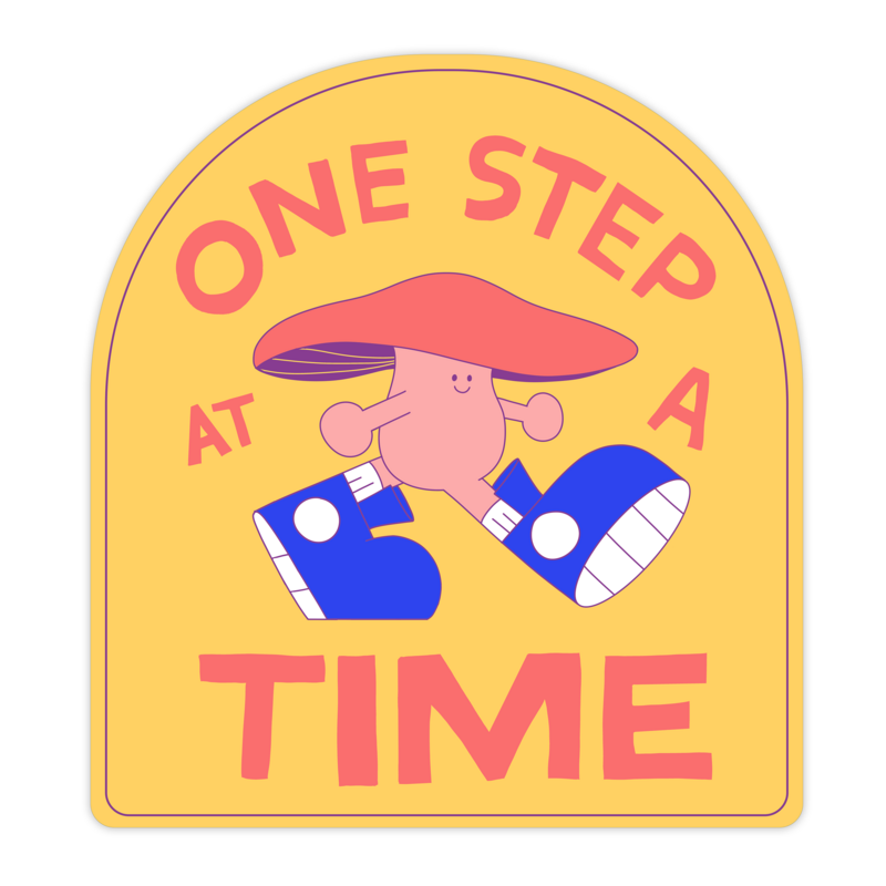 Encouraging mushroom friend with big shoes is reminding you to take it one step at a time. #StickyCharacters