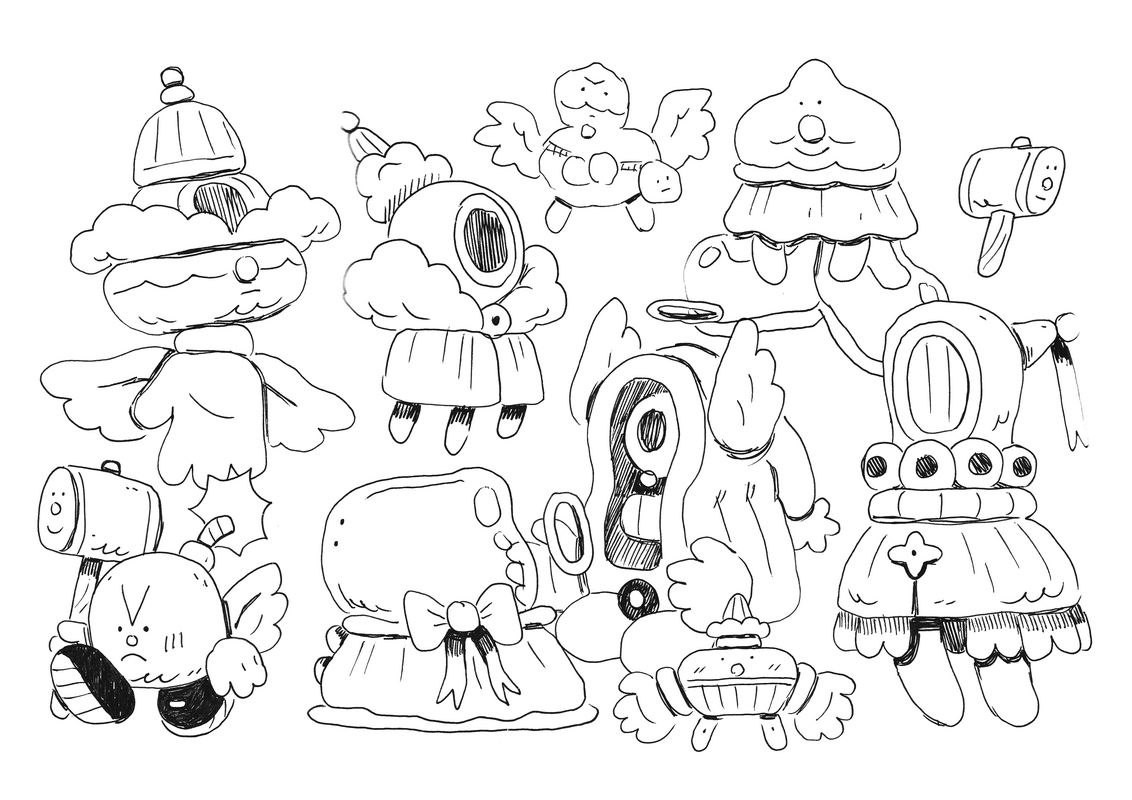 character concept spread for a personal project called "Clown Town" an exploration of design a blind box toy collection with my dear friend Corey Montemango - we gave ourselves some loose inspiration: biblically accurate clowns, merging angelic, demonic forms with those of clowns.