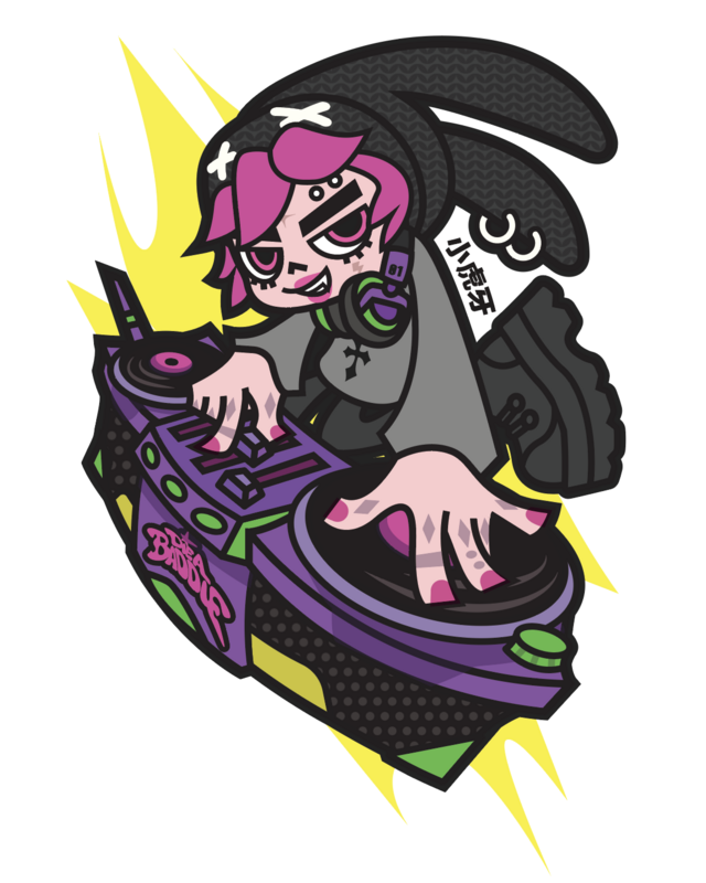 Tiny Fang working hard on her new DJ set