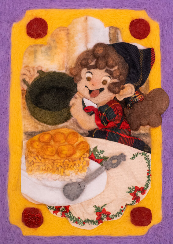 Felted relief as part of a cooking comic series
